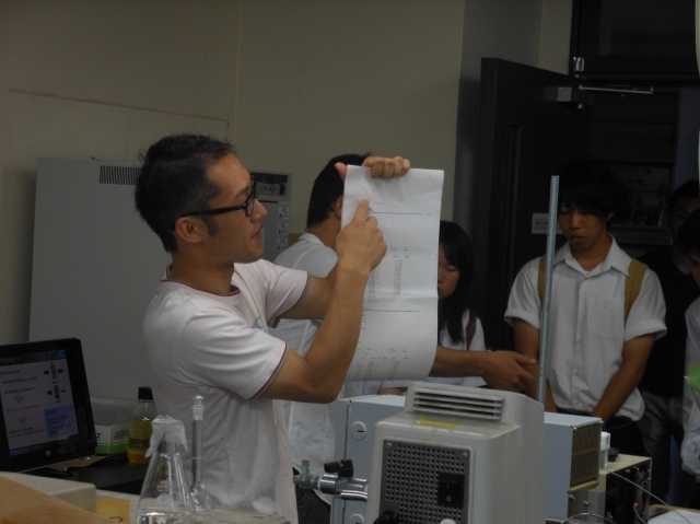 オープンキャンパスでやって来た高校生に研究室紹介をしました。簡単な実験も行いましたよ。
